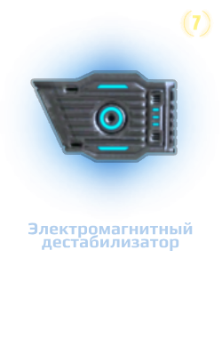 - 7 уровень: Боевой модуль «Электромагнитный дестабилизатор» (доступно при наличии пропуска).