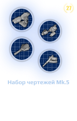 - 27 уровень. Набор чертежей для 4 уникальных орудий Mk.5 (доступен при наличии пропуска).