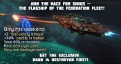 UMC launches a special campaign. Upgrade your tech. Build destroyers of ranks 8 and 11. Join the race for Sirius — the flagship of the Federation fleet, before its production is suspended! Read more » |