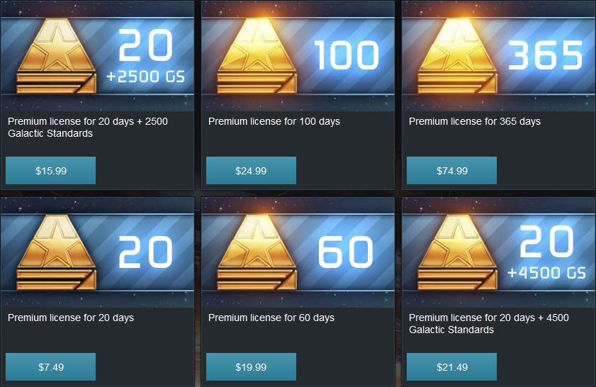 Premium license grants all pilots greater rewards for each battle.