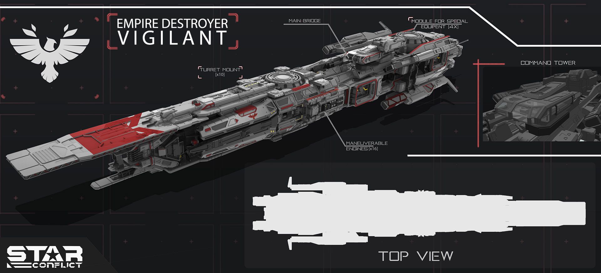 New wallpapers and arts, showcasing the beauty and power of the newest rank 14 Empire Destroyer 14 Vigilant, are now available at the official Star Conflict website.